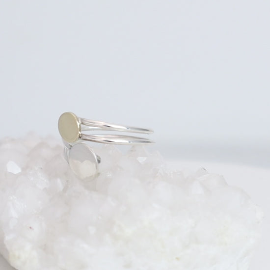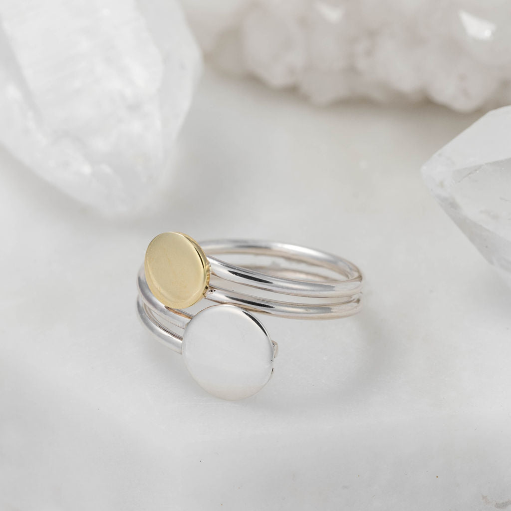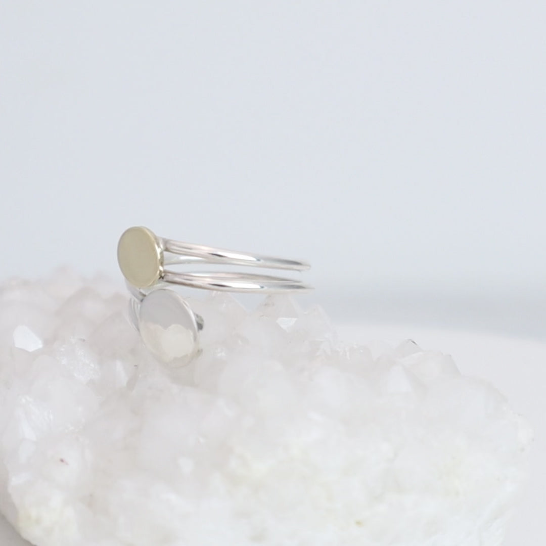 A double banded Sterling silver ring with beautiful 9ct yellow gold detailing.
