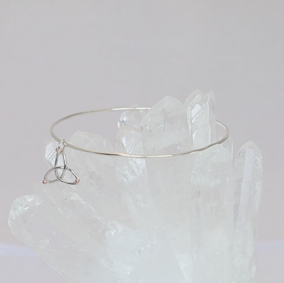 A classic Celtic trinity knot charm made by hand in Sterling Silver with copper granulation.