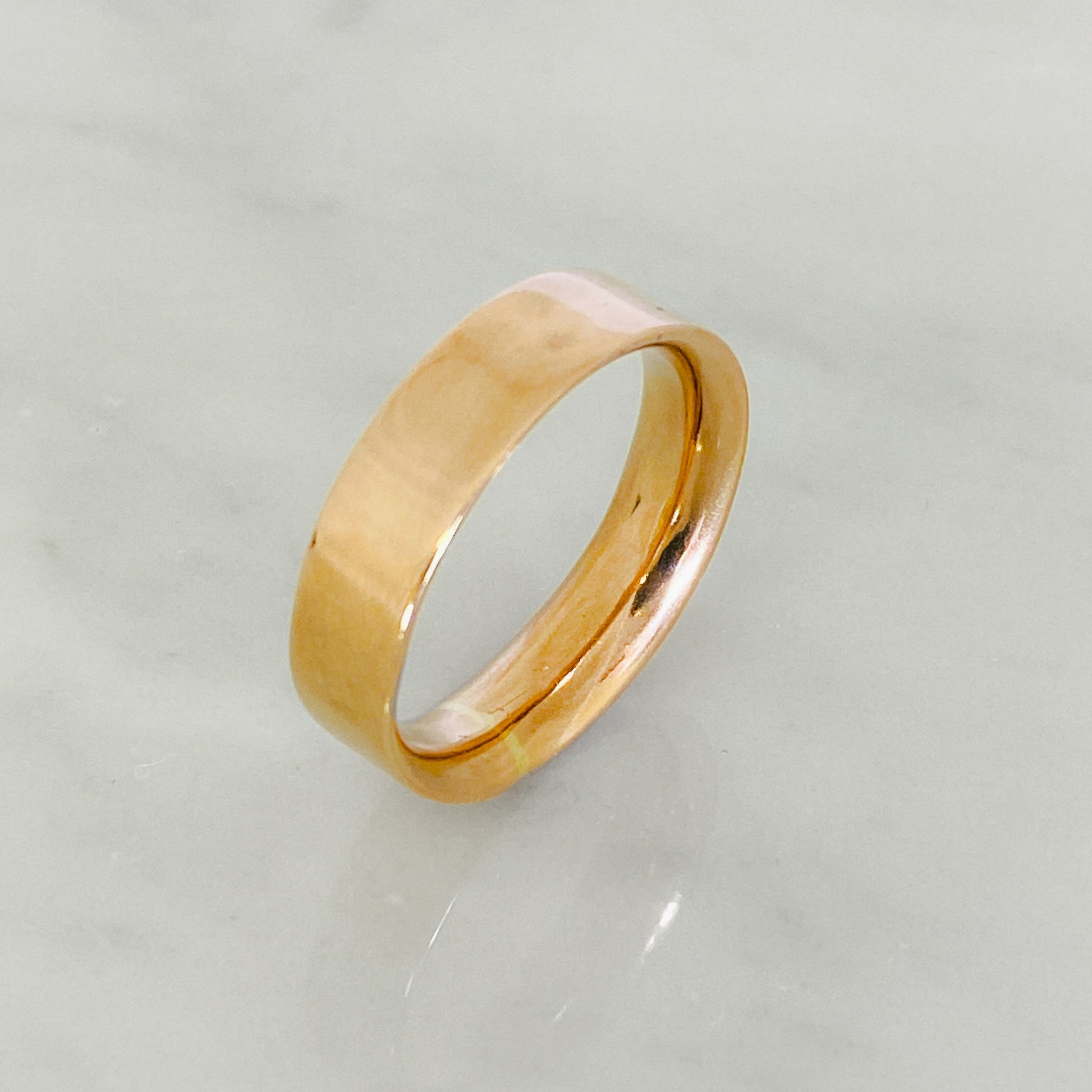 A contemporary take on a traditional ring in smooth sparkling rose gold.