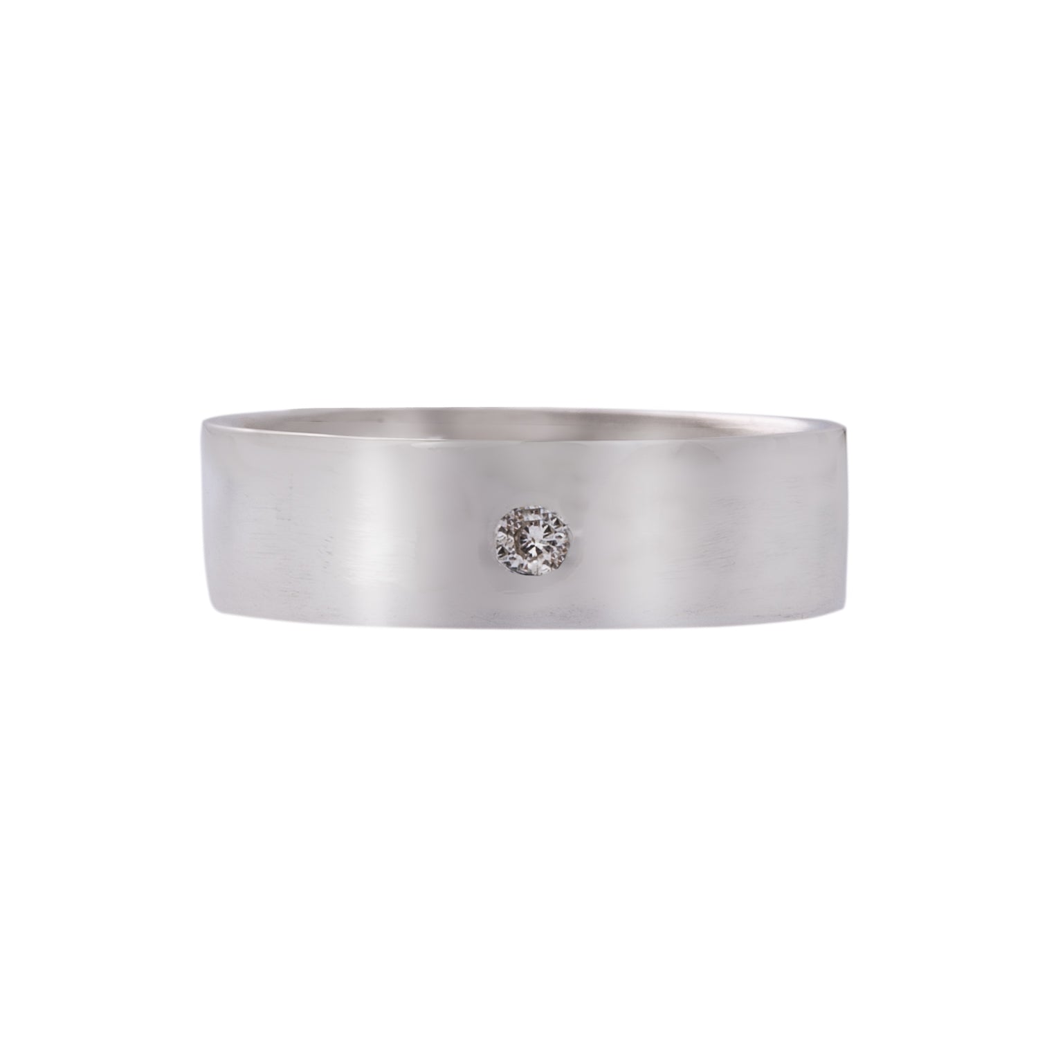 A contemporary take on a traditional ring in smooth polished white gold with a flush set sparkling diamond.