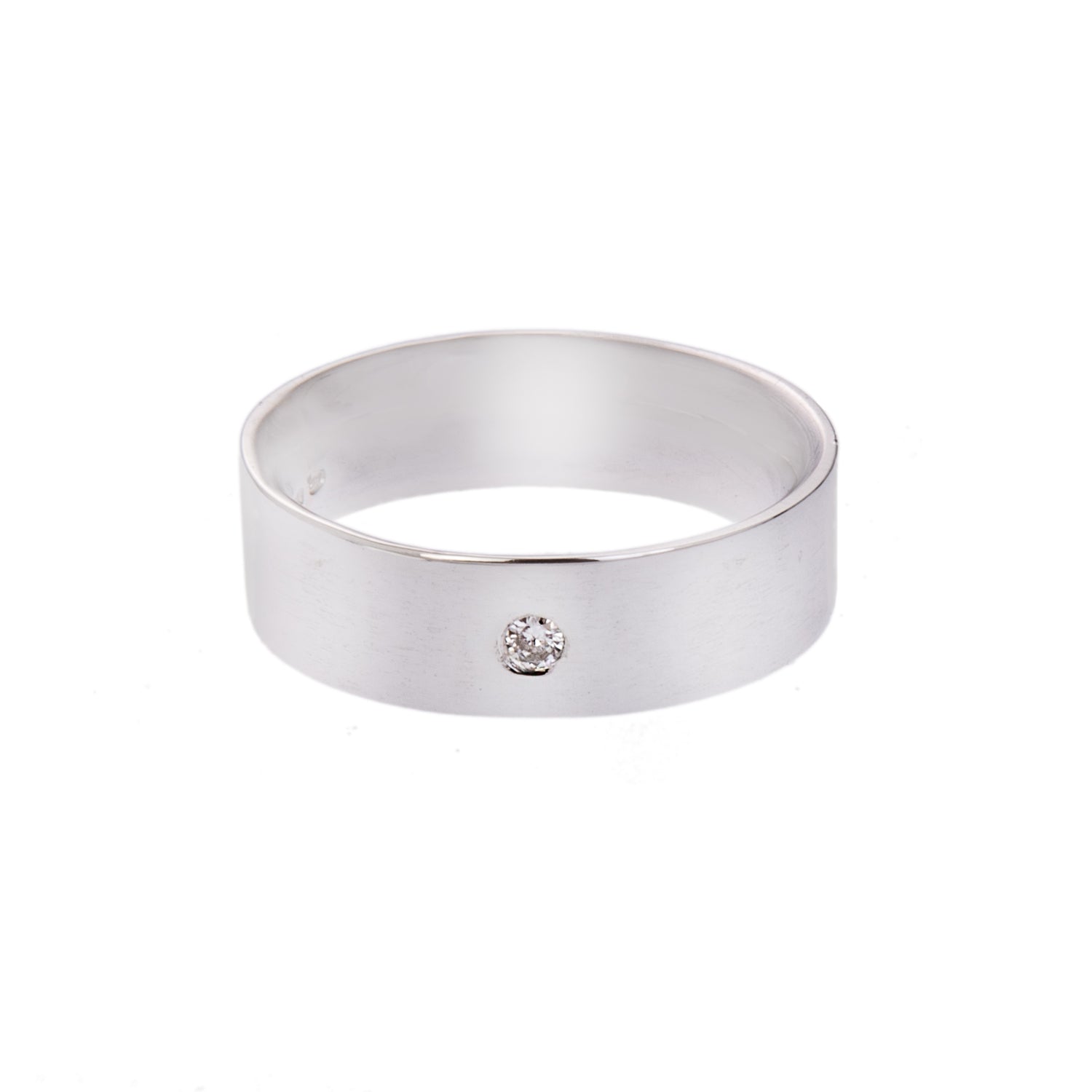 On the outside the ring has a high polished finish for maximum shine and a diamond is set within the band meaning it is entirely flat and smooth.