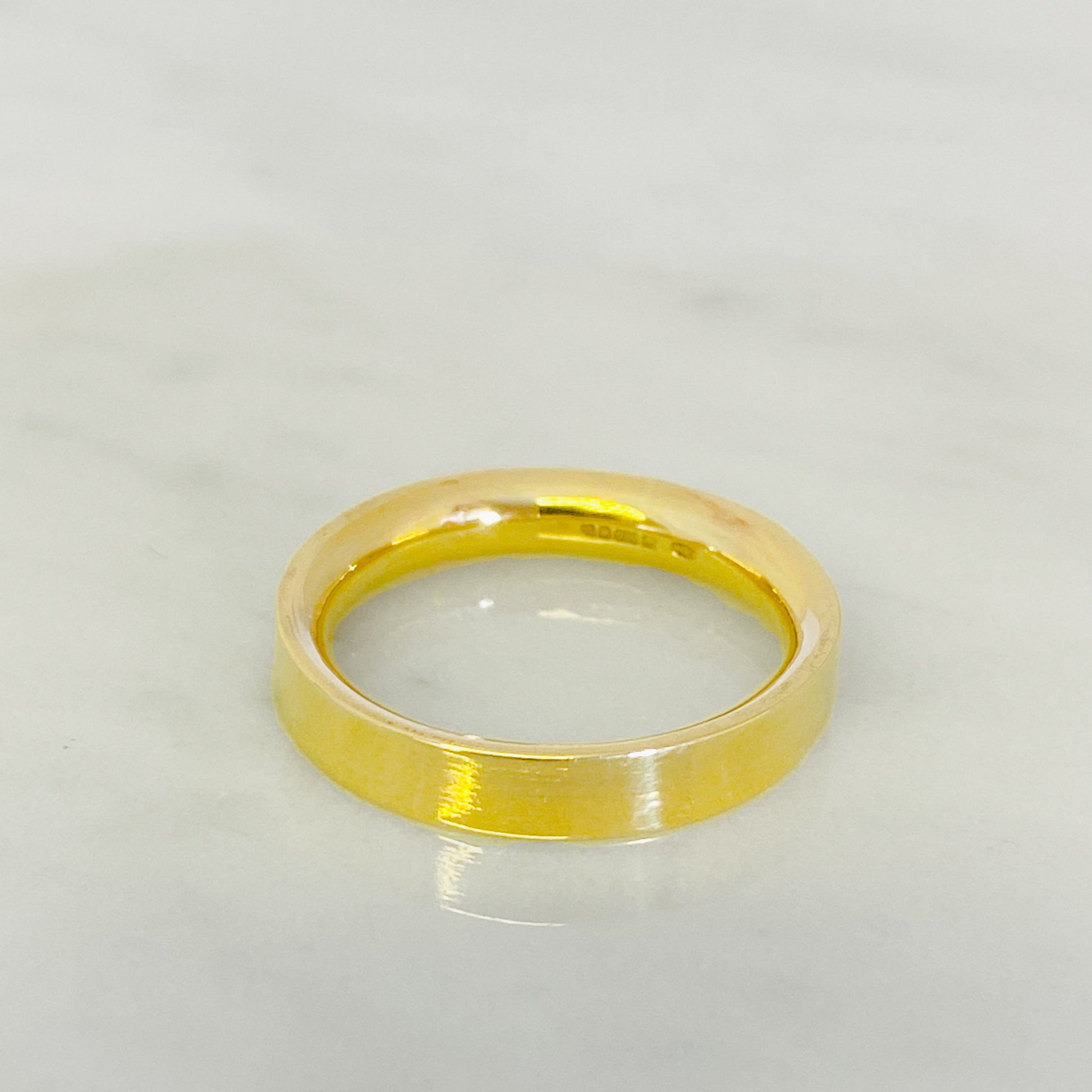 A contemporary take on a traditional ring in smooth sparkling yellow gold.