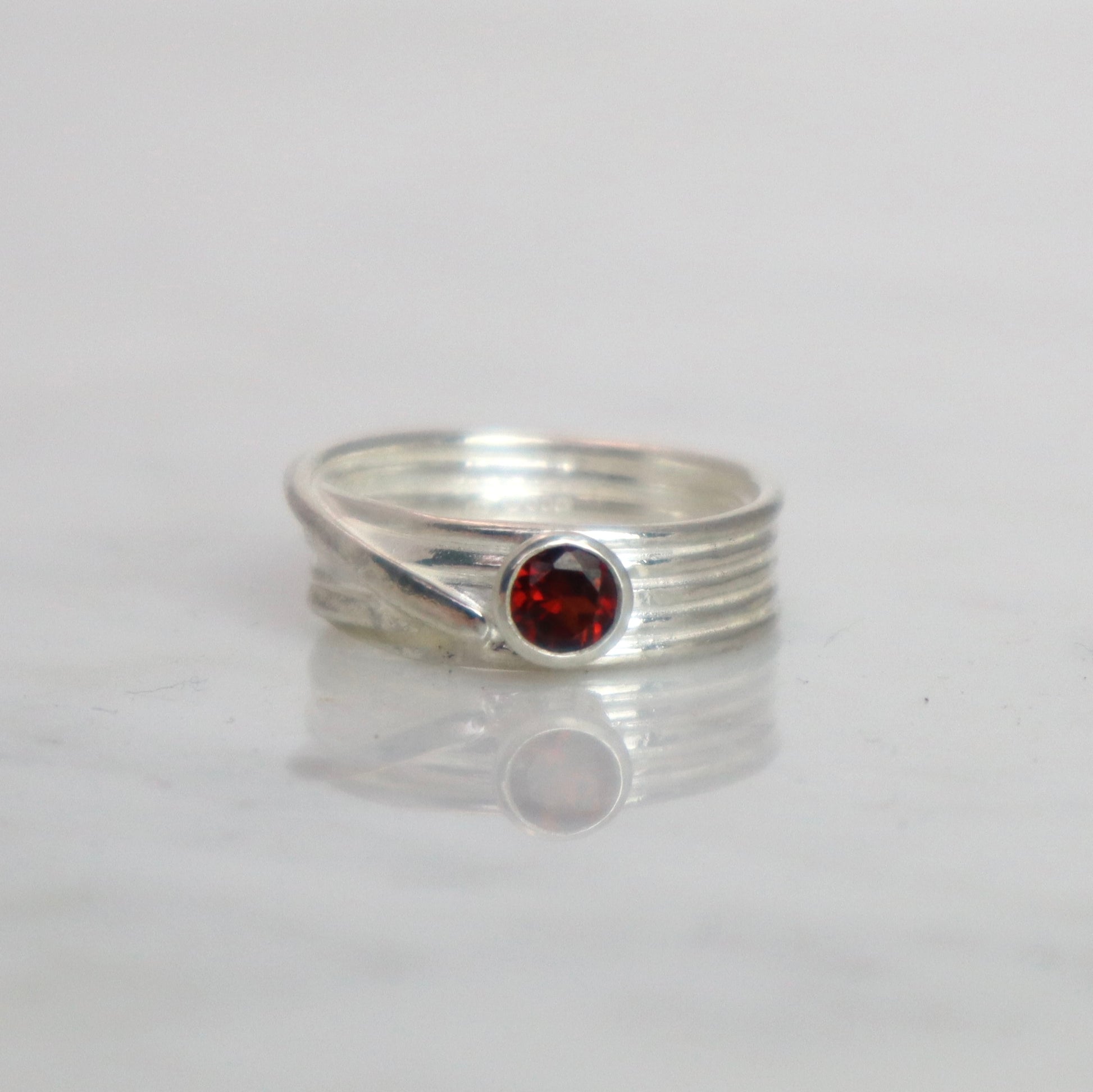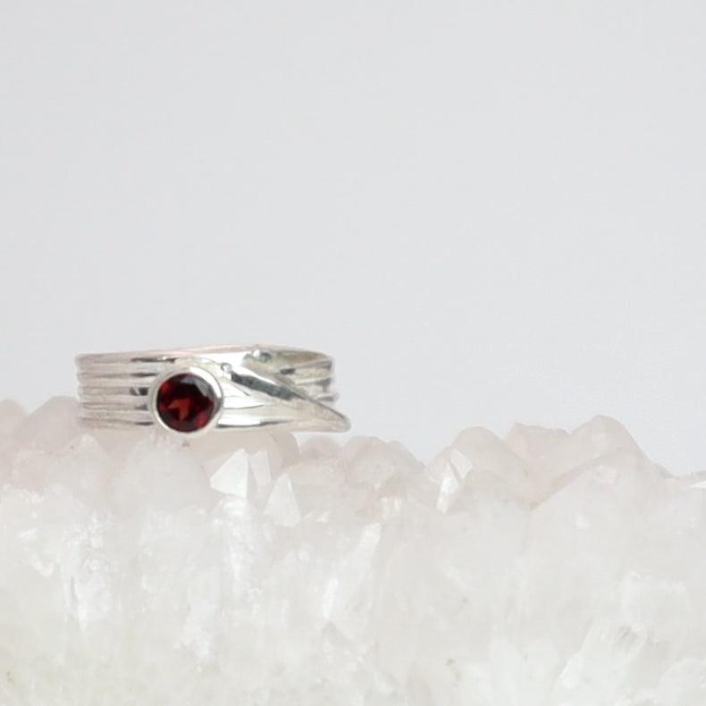 Wrapped Silver Ring with Garnet