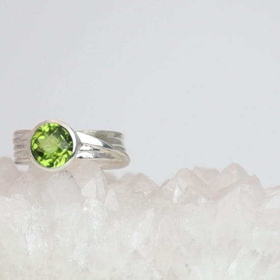 A gorgeous 9mm Peridot set in sparkling Sterling Silver.