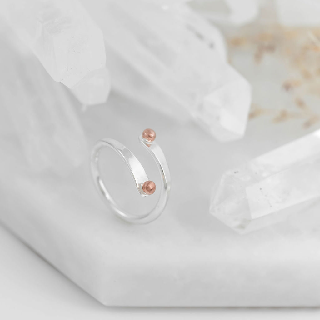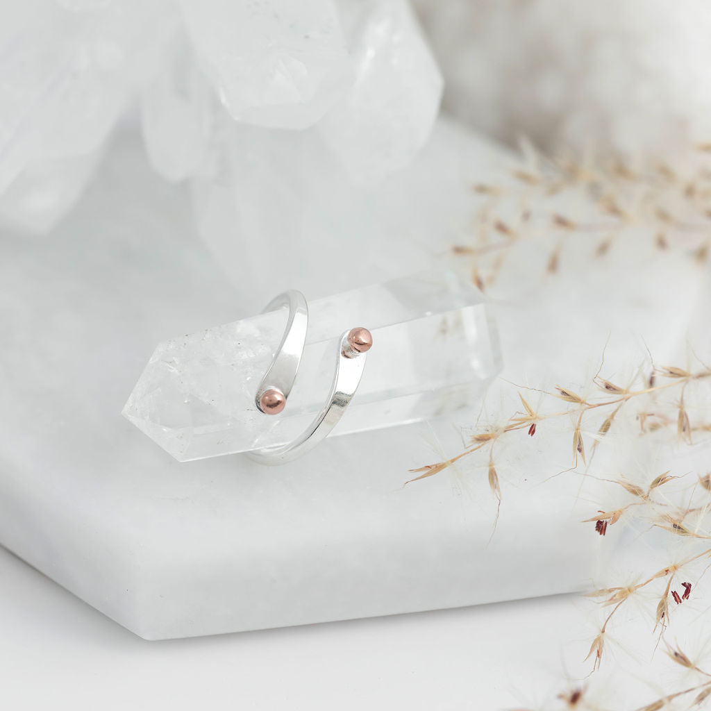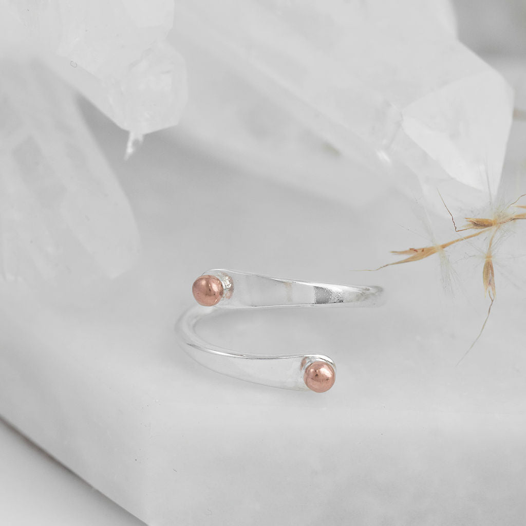 Wedi'i wneud â llaw mewn Arian Sterling gyda gronynniad copr.