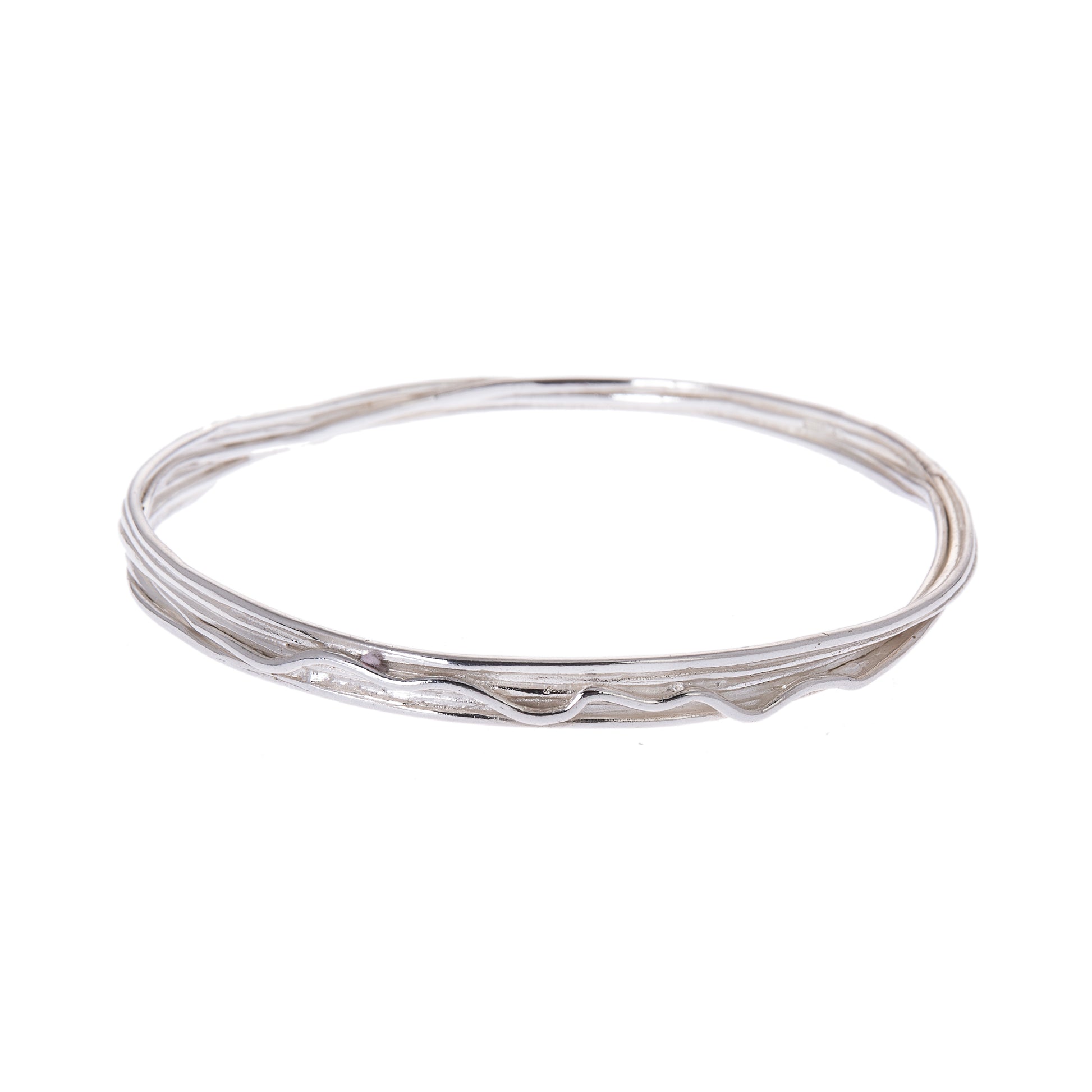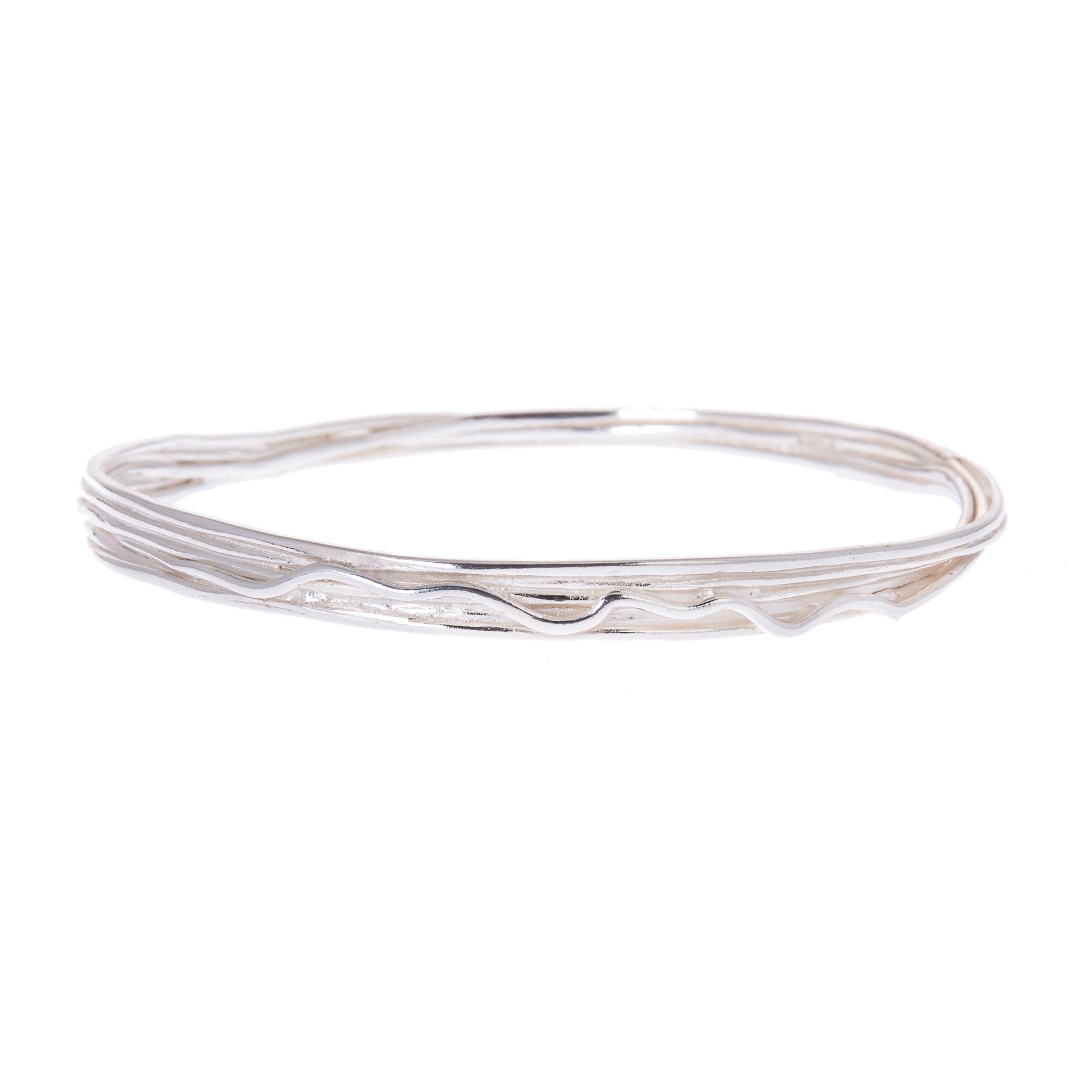All wrapped up. Layers of silver wrapped and bound together to form a solid bangle.
