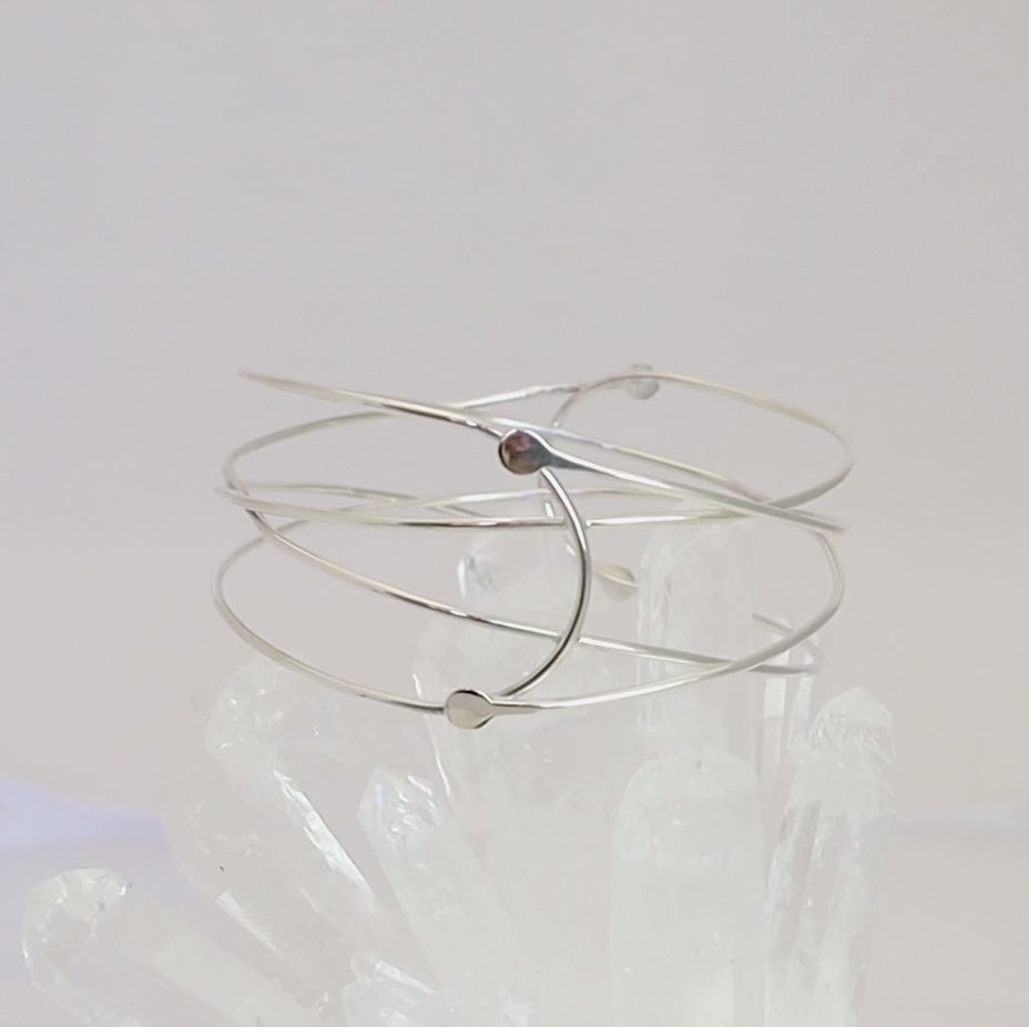Sterling sliver bangle with hammered details, intricately wrapped into a beautiful bangle, this statement piece is a real showstopper.