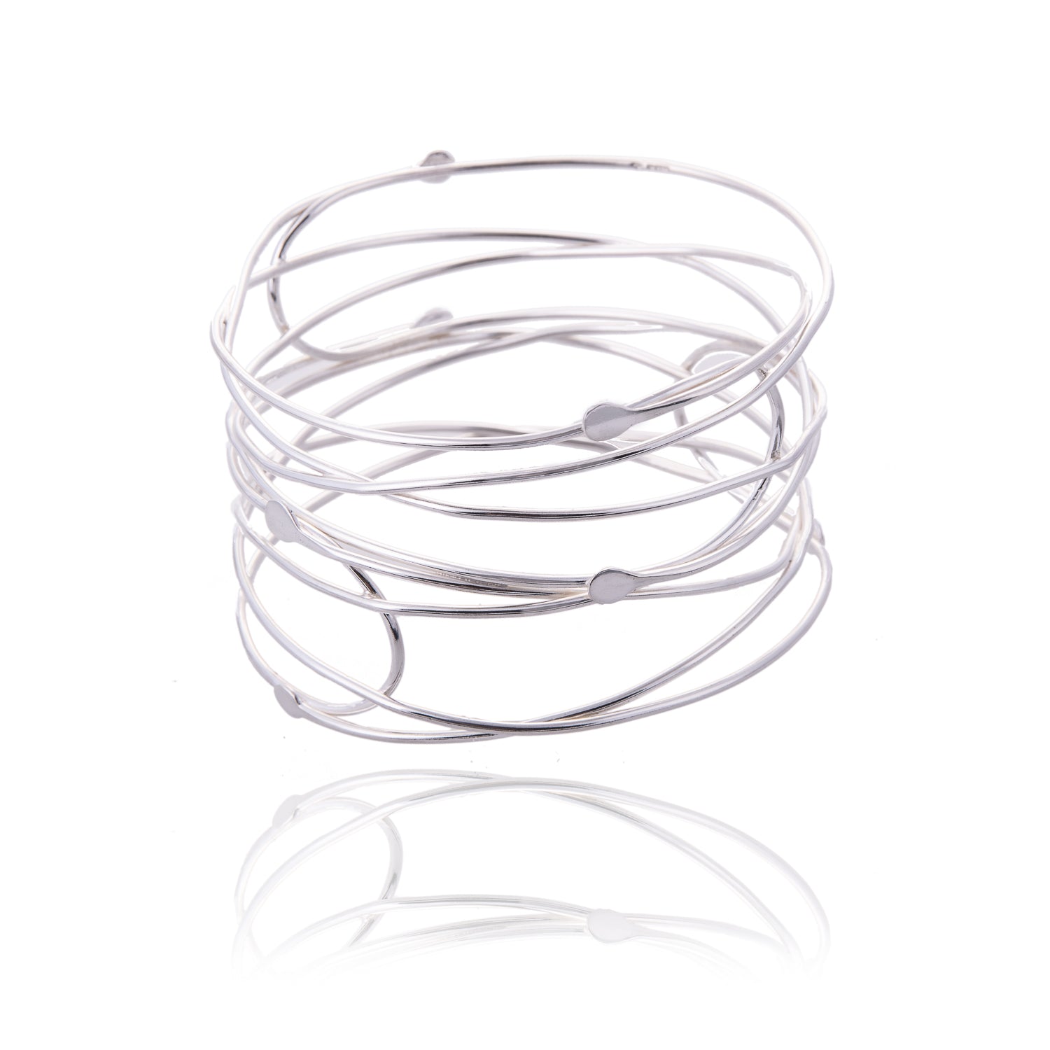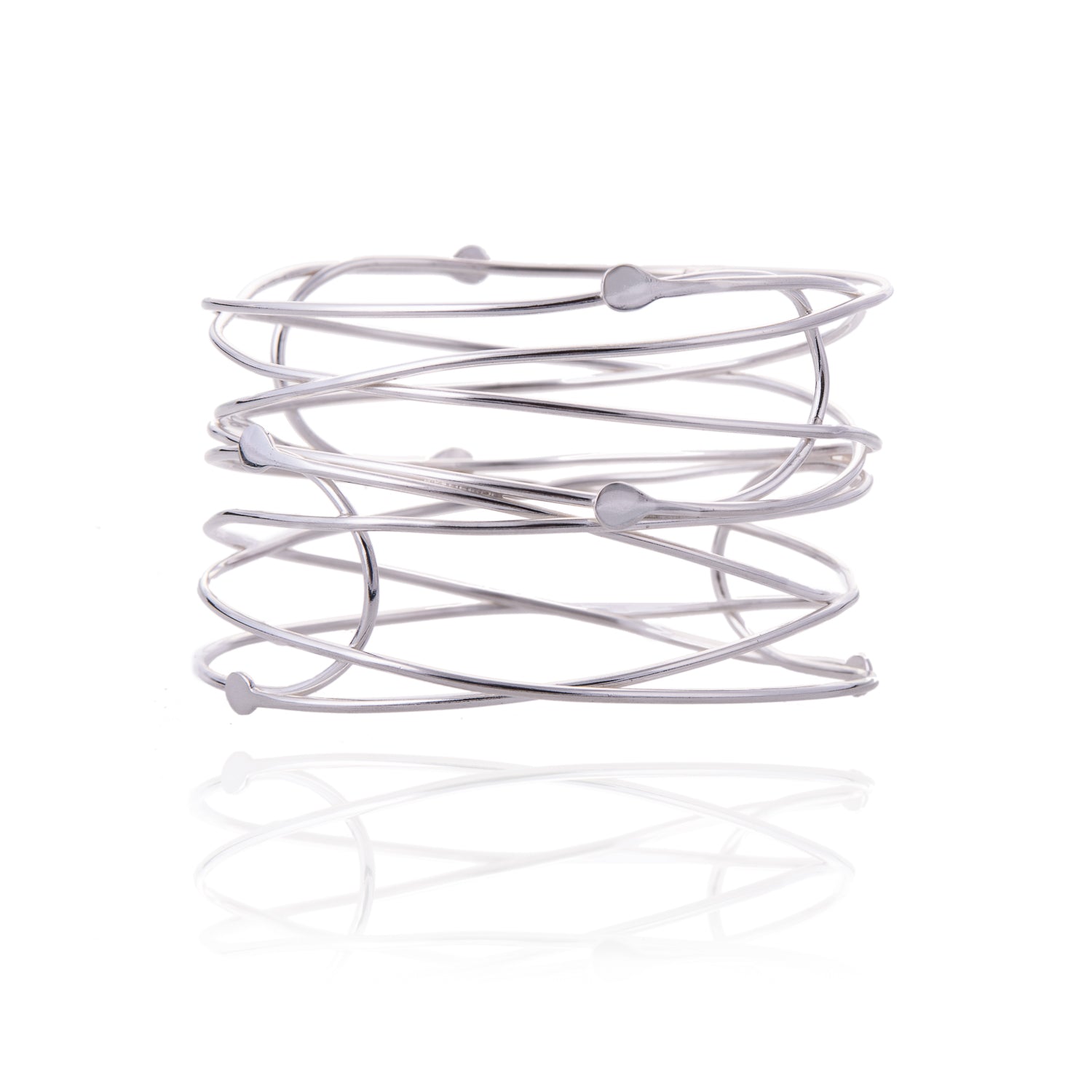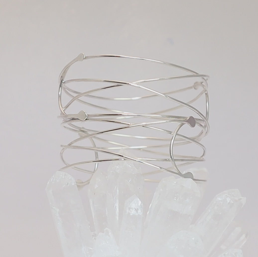 Sterling sliver double width bangle with hammered details, intricately wrapped into a beautiful bracelet, this statement piece is a real showstopper.