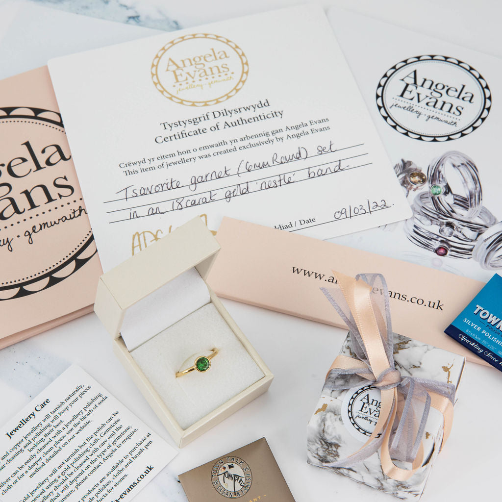 Each one of a kind piece is exclusively made by Angela using individually and specially selected gemstones of high quality and dazzling colour. Inspiration comes from the gemstones themselves whether it be textured and intricate ring bands, mixed metal finishes or detailed granulation, each one is unique and expertly hand crafted.