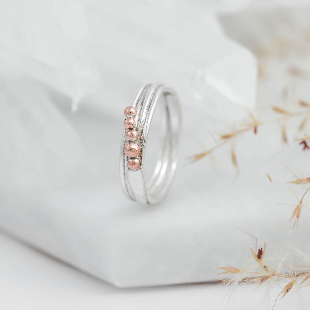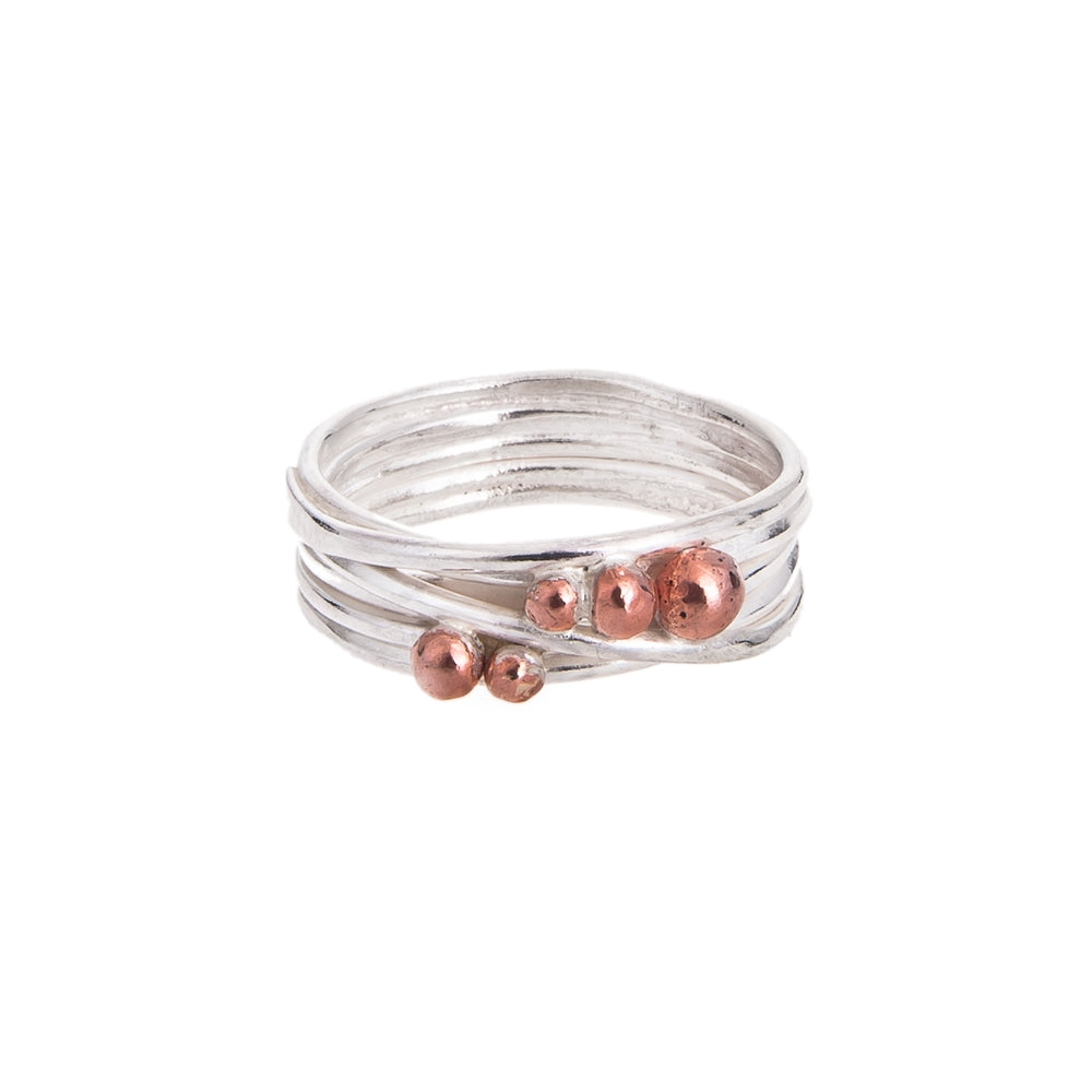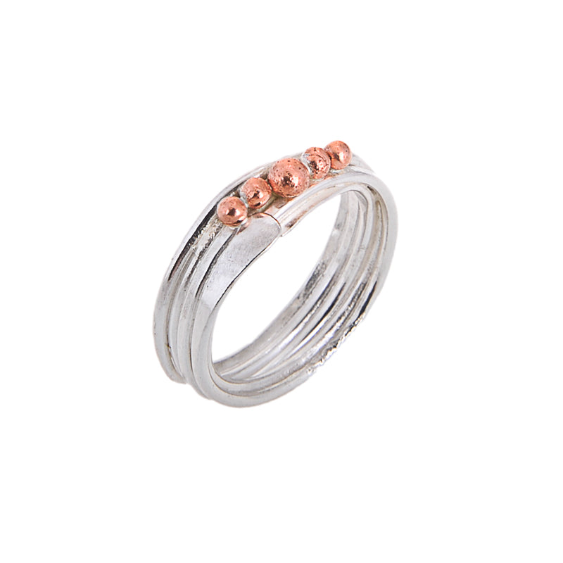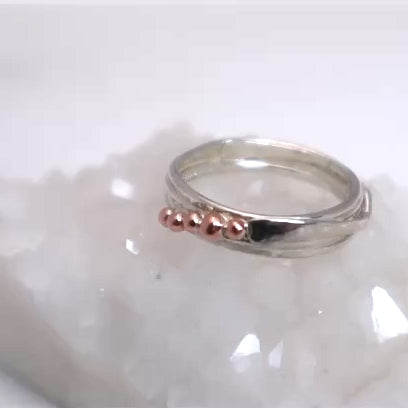 Band arian sterling wedi'i lapio gyda gronynniad copr.