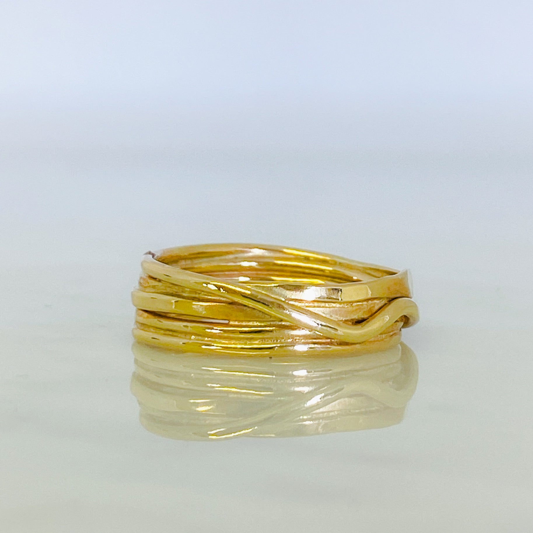 Unique, entwined yellow gold layers wrapped into a beautiful band.